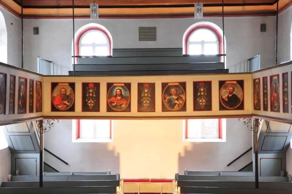 Die Gemeindeempore zieht sich um die drei Seiten des Gemeinderaumes und ist durch zwei Treppenläufe auf der Westseite zu besteigen. Ihre ursprünglichen Stützen wurden während der Restaurierung von 1888 durch zierliche gusseiserne Eisensäulen ersetzt, die 1957 mit Holzsäulen umgeben wurden. Bei der Sanierung der Kirche im Jahr 1998 wurde diese Verkleidung entfernt und die heutigen schmiedeeisernen Zierbügen in Anlehnung an die Vorhergehenden angebracht. Sämtliche Brüstungsfelder der Empore wurden mit Malereien geschmückt. In dem erhaltenen Manual der Bauausgaben wird als ausführender Künstler ein Maler Seekatz genannt, der hierfür die nicht unbeträchtliche Summe von 216 Gulden 20 Albus erhielt. Die Familie Seekatz war eine Künstlerfamilie, die sich in Westerburg bis in das Jahr 1641 zurückverfolgen lässt. Zwei Künstlerpersönlichkeiten dieser Familie kämen als Ausführende in Frage: Georg Friedrich Christian Seekatz (geb. 1683 in Westerburg, + 22.12. 1750 in Weilburg), war ab1706 zum Hofmaler von Johann Ernst von Nassau-Weilburg ernannt worden, dem u.a. Ausmalung der Neubauten des Schlosses und der Schlosskirche oblag. Sein Sohn Friedrich He(i)nrich Seekatz wurde am 16.9.1707 in Westerburg geboren. Er machte eine Kunstmalerlehre bei seinem Cousin Johann Ludwig Seekatz, war ab 1742 für zehn Jahre in Worms tätig und folgte 1752 seinem Vater in das Amt des hessisch-weilburgischen Hofmalers. Für Friedrich Heinrich spricht die Tatsache, dass in einer erhaltenen Kirchenrechnung von 1735 Ausgaben für dessen Verpflegungskosten aufgeführt sind. Andererseits war sein Vater wohlbestallter Hofmaler mit eigener Werkstatt und ein so großer Auftrag konnte in absehbarer Zeit nicht von einem einzelnen Künstler ausgeführt worden sein. Somit könnte man vermuten, dass vielleicht Vater und Sohn in Werkstattgemeinschaft die Ausmalung der Emporen und der Kanzel besorgten. Die breiteren Felderungen der Gemeindeempore zeigen Brustbilder Christi, der Apostel sowie des hl. Paulus und wechseln mit schmaleren Tafeln mit zierlich gemalten Blumengehängen. Den Personendarstellungen sind ihre Namen auf kleinen Schildchen beigefügt. Während die Apostel die Werkzeuge ihres Martyriums tragen, ist Jesus als Salvator Mundi (Retter der Welt) mit der Erdkugel dargestellt. Als die Hauptpersonen sind Jesus, Petrus, Paulus und Matthias auf der westlichen Emporenbrüstung dargestellt, die anderen Apostel verteilen sich auf den Längsseiten der Empore. Auf den beiden Abschlussbilder der Emporenbrüstung nach Osten finden sich zwei szenische Bilder: auf der südlichen Seite ist die Darstellung des Propheten Jonas, der von dem Walfisch wieder an Land gespien wird, während auf der nödlichen Seite die Auferstehung Christi dargestellt ist. Diese typologische Gegenüberstellung eines alttestamentarischen Geschehens mit einem Ereignis aus dem Neuen Testament ist seit alters in der Auslegungstradition der Bibel verankert. So wie Jonas drei Tage im Bauch des Fisches ausharren musste, ist Christus drei Tage in die Hölle hinabgestiegen, bevor er auferstand. Was im Alten Testament angedeutet und verkündigt wird, vollendet sich im Neuen Testament. Dadurch sollte verdeutlicht werden, dass Christus wirklich derjenige war, auf den die Propheten hingewiesen hatten...